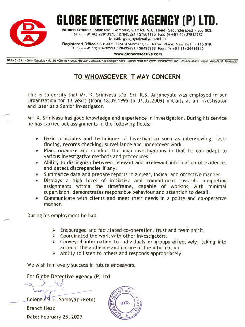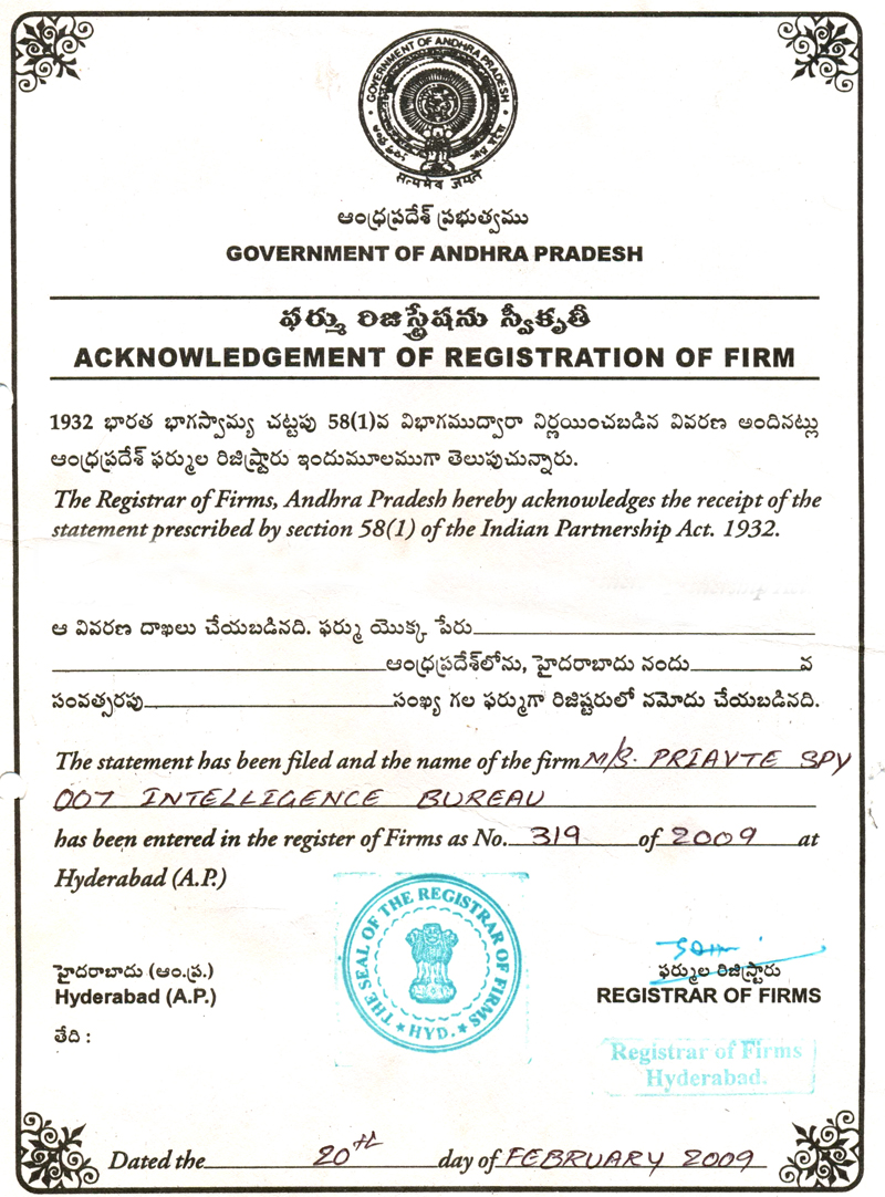 Private Spy 007 is the pioneer and the leader in Private and Corporate Investigations. It is operated by Mr. Srinivasu, who has tremendous experience of 20 Years in this Profession . Under his proficient leadership Private Spy 007 has now became a legendary name among the corporate houses in the present competitive world.